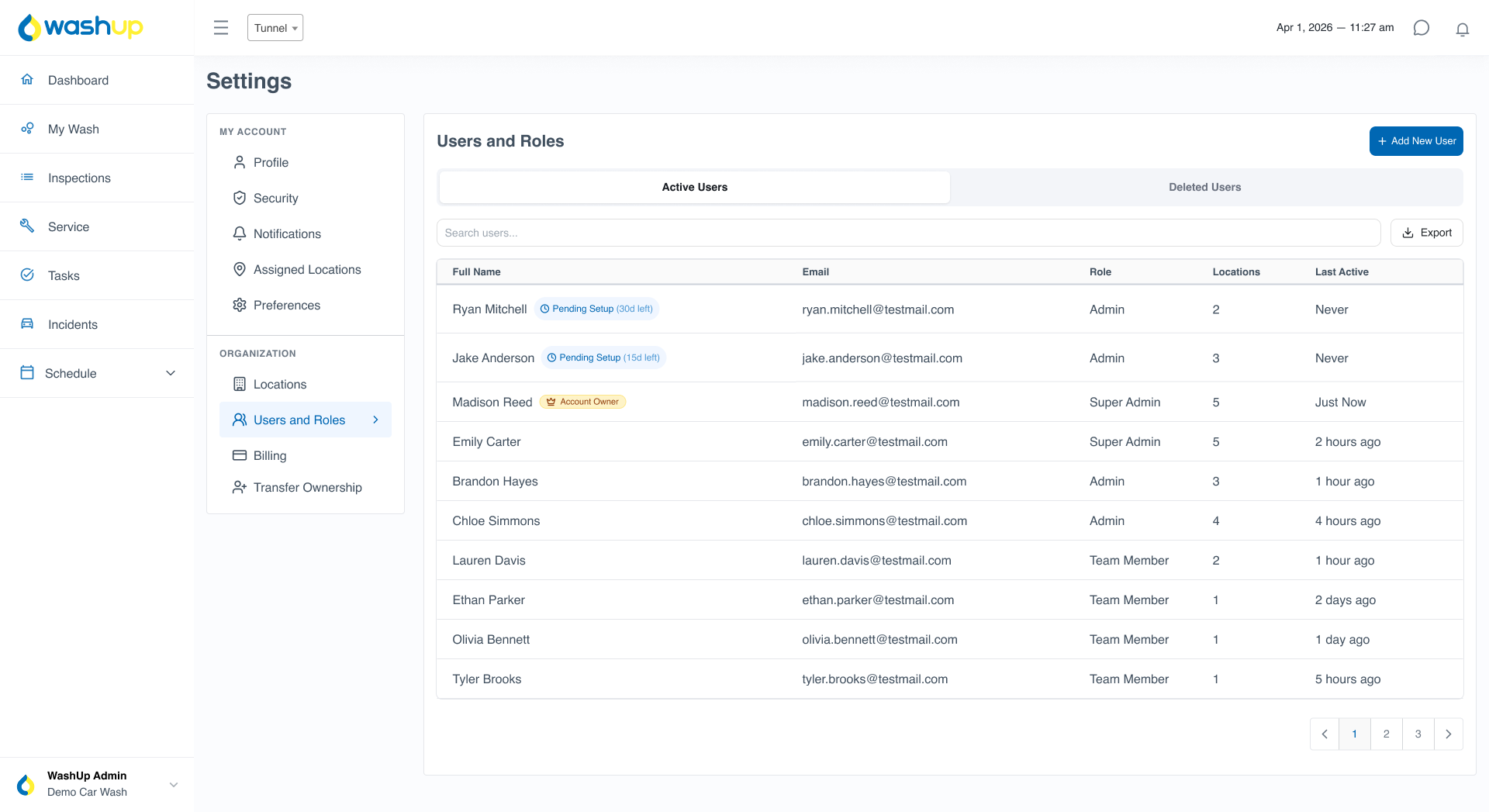 We’ve rolled out a major upgrade to the Users & Roles section in WashUp, giving you more control over your team and making user management faster, easier, and more self-service. This has been one of the most requested improvements, and it’s built to remove friction and give admins full visibility into their account.